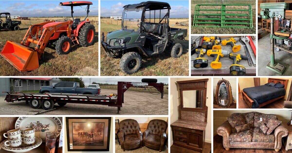 Beautiful Western Home Decor, Furniture, Kubota MX 5100 Tractor, Kubota Side Kick ATV, Shop Equipment, Livestock Equipment and More!